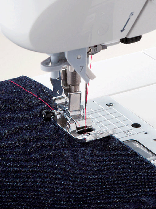 I lagerSy perfekta stickningar med vår 1,5mm pressarfot med linjal. Fungerar lika bra i tunna tyger liksom läder!