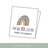 - Aufnäher mit verspieltem Motiv und Hinweisen zum Waschen.