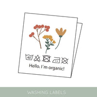 - Patch with a playful motif, information on washing advice & quotes on the other side.